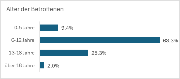 Die Betroffenen waren zum Zeitpunkt der Vorfälle überwiegend 6-12 Jahre alt.